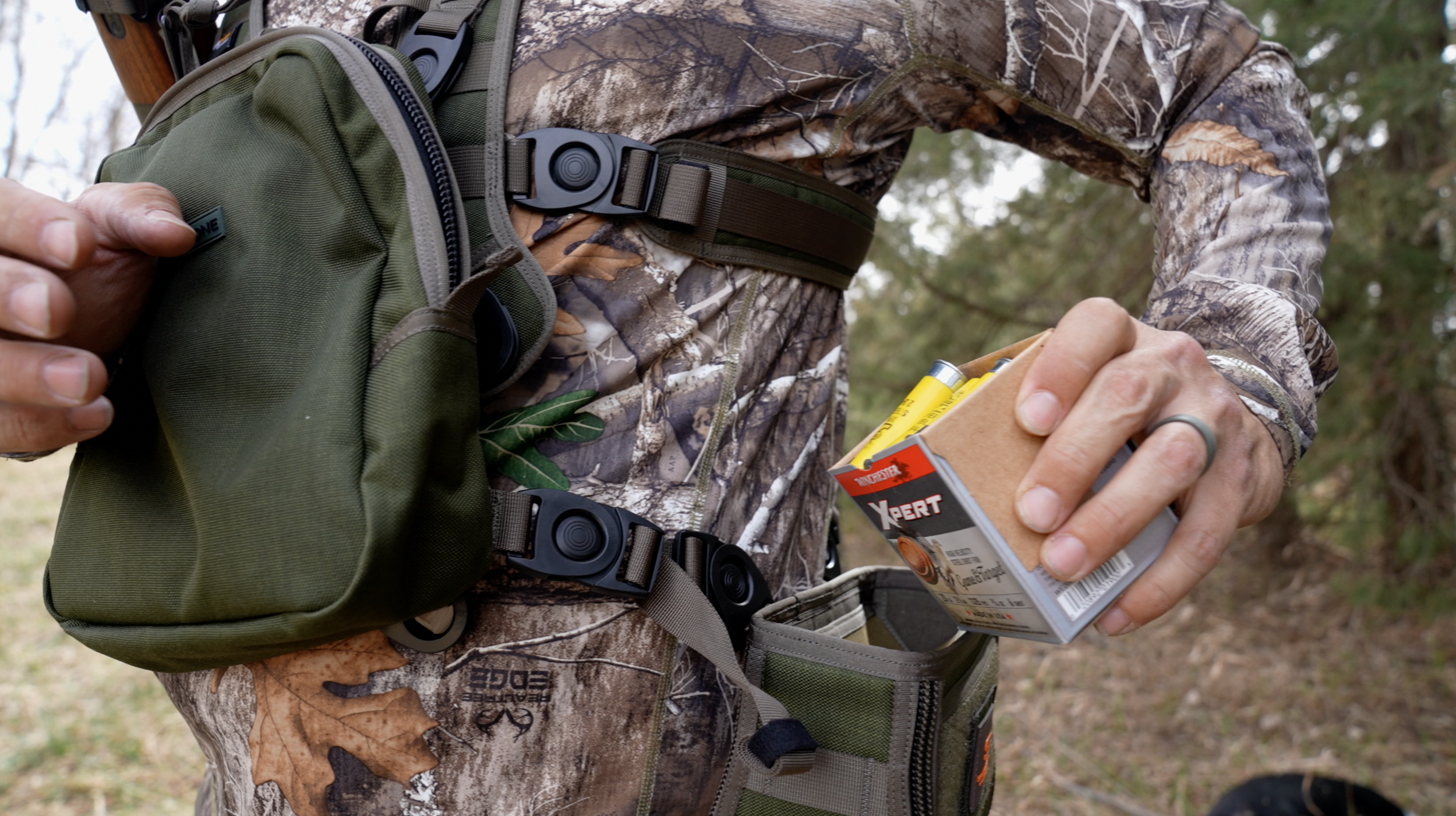 It’s a modular system, which means you can customize it depending on what you’re doing. You can run it light and simple, or add components like an ammo pouch or game pouch depending on the hunt.
